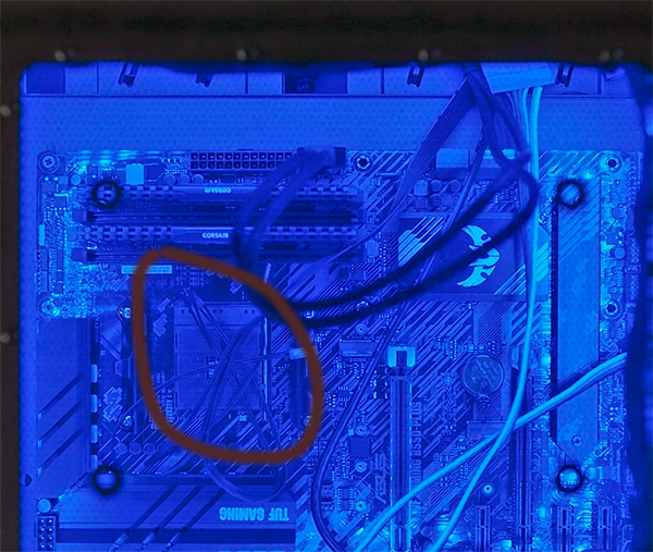 Память подключена - две плашки Corsair над процессорным сокетом.