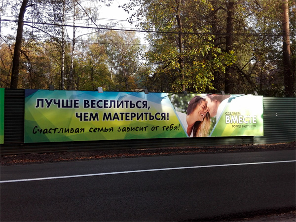 Николай каждый раз, когда проезжает мимо этого загадочного плаката, задает себе вопрос, почему нельзя материться во время веселья и как это вообще связано.
