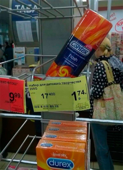 В Электроуглях есть магазинчик, который расположен на Y-образном перекрёстке, так в народе его называют "Раздвинь ляжки". Но, только в народе.