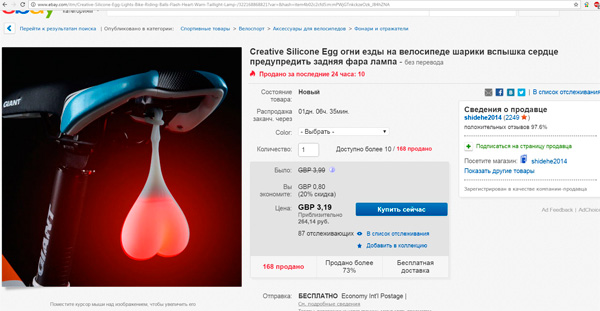 Андрей прислал хит сезона на Ebay: светящееся сердце для велосипедиста. И тут сразу вспоминается Маркес: "Сердце - это третье яичко, мой генерал".