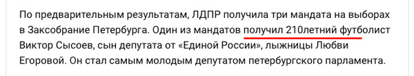 Повезло кому-то с 210летним депутатом-футболистом. Не только отличный спортмен, но и очень умный политик, судя по его интервью . Что не ответ, то перл, достойный говорящих усов президента: