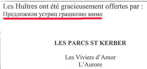 Во французском посольстве, как рассказал Егор, решили, что они не хуже китайцев. Поэтому перевод на русский приглашений на дегустацию шампанского и устриц был сделан с должным уровнем абсурда.
