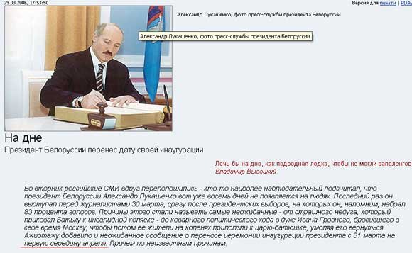 Лукашенко очень хитрый, считает Barmaglot. На первую половину середины апреля он назначил свою инаугурацию, а на вторую половину середины апреля - народные танцы и раздачу подарков населению. Каких подарков? Портретов Лукашенко, разумеется. Отеческие глаза батяни должны блестеть из каждого угла.