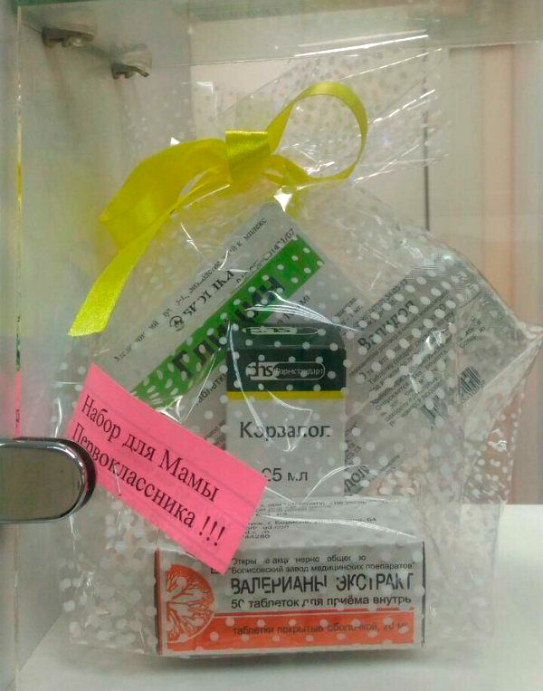 И о мамах первоклассников позаботились: корвалол там, глицин, валерьянка - все, как полагается.
