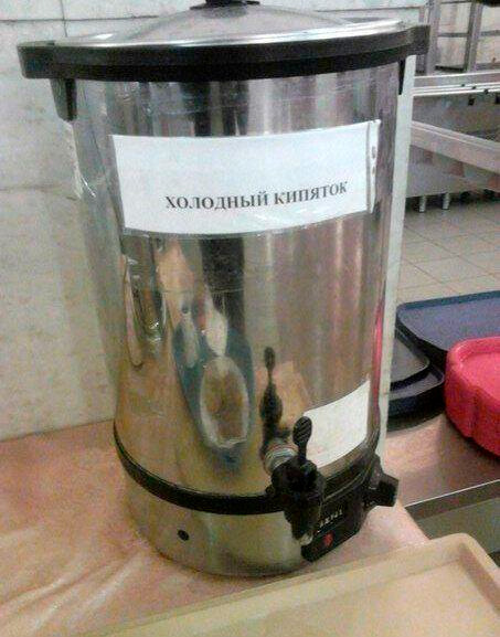 К кипятком то что? Есть кипяток, а есть холодный кипяток. Для эстетов надо рядом поставить ещё один поменьше с надписью "Холодная кипяченая вода" и рисунок руки с отставленным мизинчиком. 😄