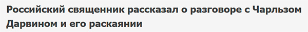 А оправдания священника недавно попались в блоге Кураева, вкратце сводятся к: "мой ШУТЛИВЫЙ рассказ о встрече с давно почившим великим английским ученым Чарльзом Дарвиным в Вест-Минстерском Аббатстве"