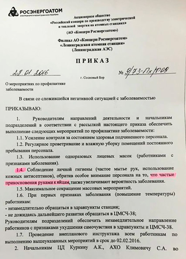 Интересно, зачем сотрудникм Росэнергоатома часто прикасаться к яйцам...