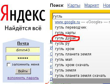 Кстати, если набирать слово "Гугль" в Гугле, то "Гугль дурак" будет на первом месте, а на последнем - "Гугль ты дурак". Самокритичненько.