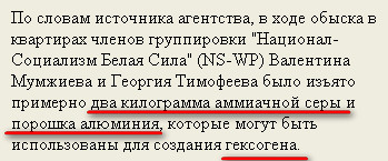 Галина восхищается алхимиками из "Белой силы". Делать гексоген из порошка алюминия и несуществующей в природе аммиачной серы - это сильно. Таким гексогеном инфекции мочевыводящей системы не вылечить, однозначно!