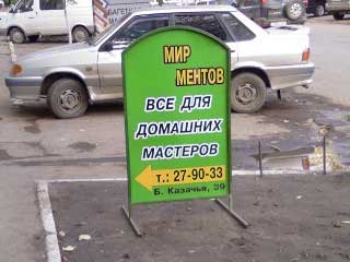 Вот такие вот менты для домашних мастеров, веселится Роман. Конечно, изначально там было написано "инструментов", но прохожие не смогли избежать соблазна.