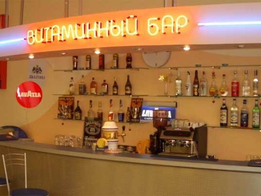 В одном из выпусков у нас была чудесная фотография фитнес-центра по-американски, а теперь Paul прислал изумительную фотографию витаминного бара по-русски...