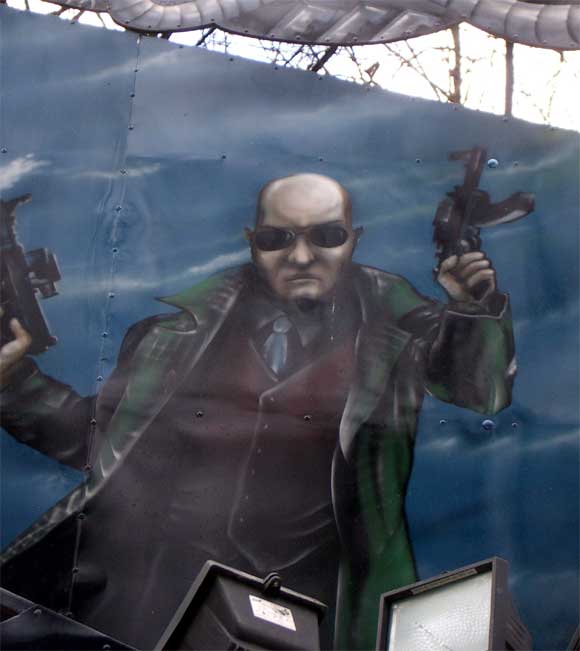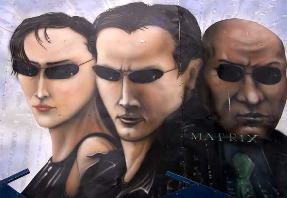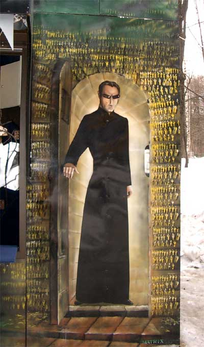 Вчерашний день, часу в шестом зашел я на Сенную... Впрочем, вру, не на Сенную, а в Сокольники. Никакую женщину кнутом там, к счастью, не били, а вот небольшой аттракцион под названием "Матрица" мое внимание привлек. Чем? Уровнем мастерства художника, который так близко к тексту изобразил персонажей из этого фильма, что казалось - они вот-вот ка-а-а-а-ак прыгнут...