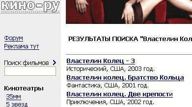 Муравлев Вячеслав на "Кино.ру" искал фильмы "Властелин колец". Нашел. Неожиданно выяснил, что они достаточно разных жанров...