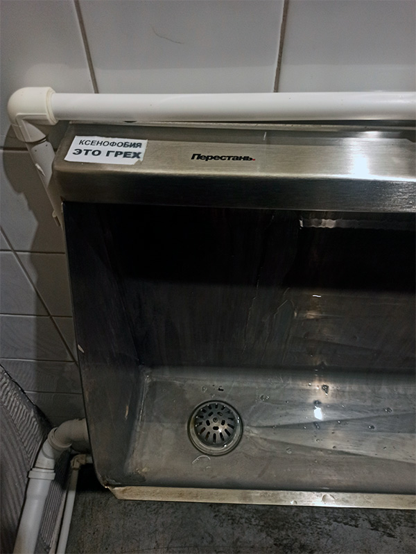 Насчёт ксенофобии не знаю, но выгравированная на унитазе надпись "Перестань" заставила задуматься.