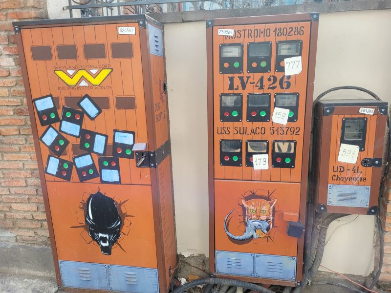Граффити Goshaart - настоящая достопримечательность Тбилиси! И тема Чужого и котиков проработана шикарно! А в некоторых местах можно встретить этакие альманахи его работ.