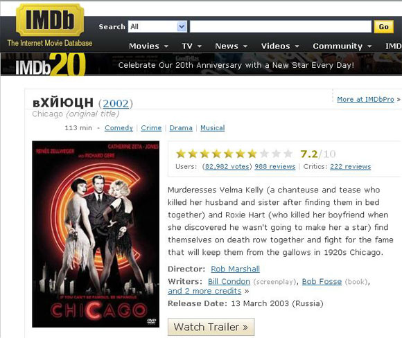На IMDB, рассказал Константин, непонятно с какого бодуна сделали русификацию названий для наших IP. И теперь заголовки выглядят более чем экзотично.