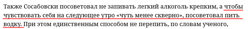 Судя по всему в преддверии новогоднего праздника профессора спросили как не накидаться быстро, он и рассказал в общем-то банальные вещи.
