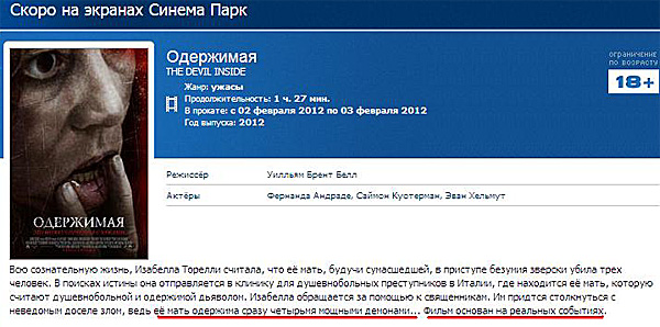 Фраза "фильм основан на реальных событиях" для тупой перепевки "Экзорсистора" - это красиво, считает Юрий.