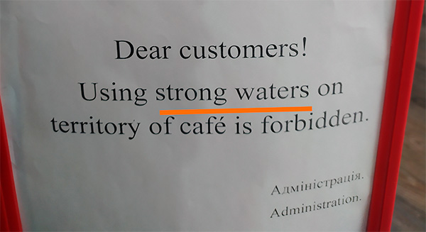Не используйте сильные воды на территории кафе, пожалуйста, просит Алекс и администрация кафе.