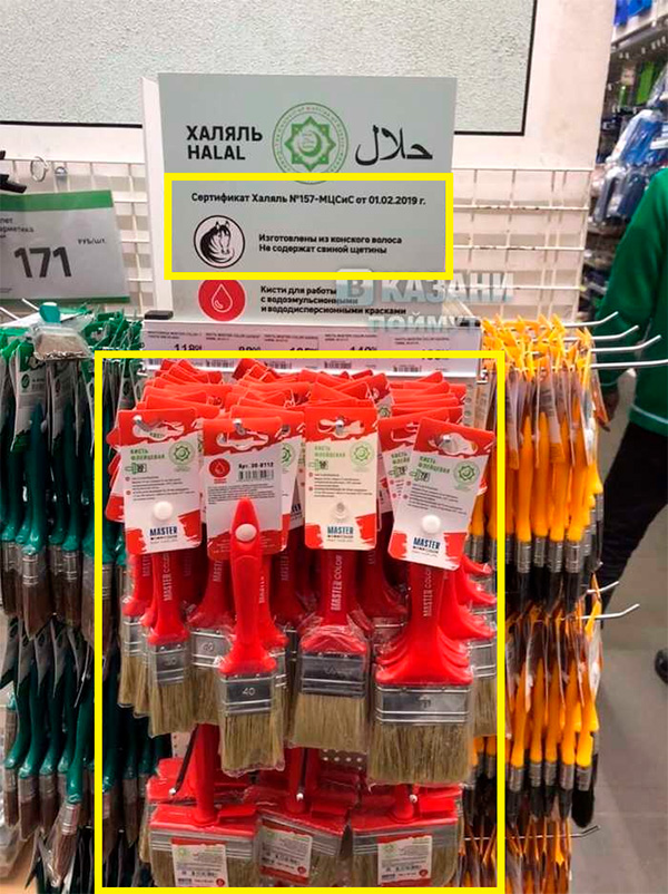 Халяльные малярные кисточки - это красиво, считает Евгений. Мусульманам и иудеям запрещено употреблять в пищу свинину (по причинам, которые были актуальными всего-то две тысячи лет назад, но тем не менее), но про малярные кисточки в священных книгах разве было что-то сказано?