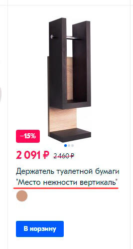 Держатель туалетной бумаги "Место нежности вертикаль", удивляется Александр? Ну, хорошо хоть не "Нежный поцелуй в горизонталь".