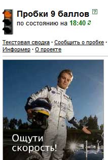 А я думаю, что это вовсе не так. Кто хоть раз ездил по девятибалльным пробкам в Москве, тот отлично знает, что такое "ощути скорость": когда вылезаешь из глухой пробки и скорость мгновенно возрастает аж до 40 километров в час. Вот тогда по-настоящему ощущаешь скорость!
