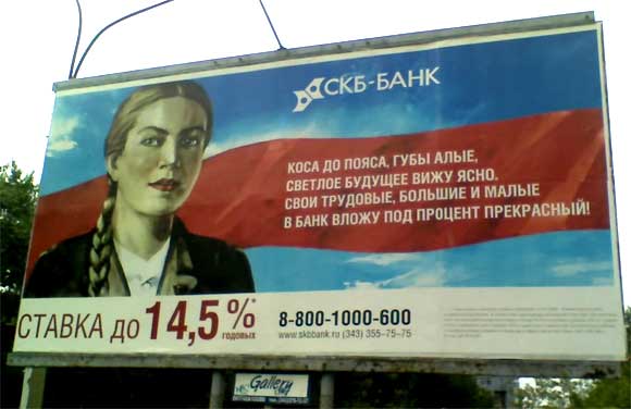 Не, не фотошоп, у этого банка сейчас такая рекламная компания. Всякие колхозницы и молотобойцы. У нас весь город обвешан. "Хочешь сей а хочешь куй." и т.п.