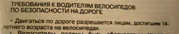 Это еще что, замечает Максим Рябченко. Другие околодорожные прекрасные мужчины родили документ, из которого следует, что двигаться по дороге можно только тем, кто достиг 14-летнего возраста на велосипедах. И даже самокат тут не прокатит, понимаешь!