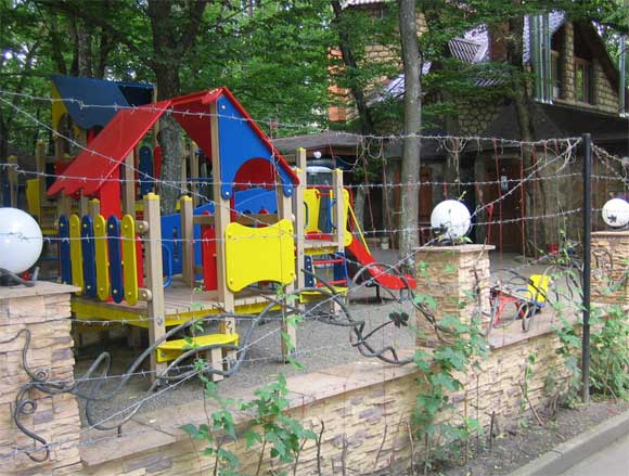 Ну а если детки будут кобениться, замечает Дима, тогда срочно отправлять их на вот такую миленькую детскую площадку - оттуда не сбегут!