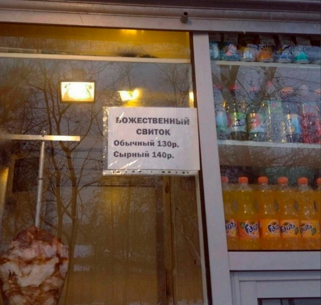 В принципе, логично, что сырный божественный свиток стоит дороже обычного. Впрочем, судя по фону, это какая-то банальная шаурма/шаверма, а так уже неинтересно.