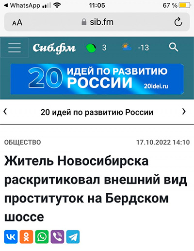 Ну и вот вам сразу хорошая идея по развитию России: нужно заняться внешним видом проституток, стоящих на Бердском шоссе, а то что они прям лахудры какие-то?!!