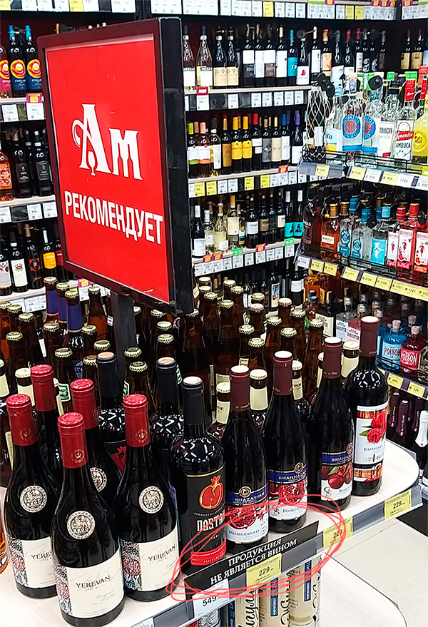 Про "не является вином" уже написали. Возможно, хозяев магазина уже оштрафовали за что, что у них в винном отделе стоят "не вина"