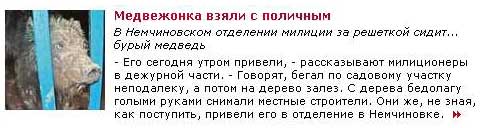 - Этот хорек пока косит под кабана, - рассказал дежурный нашему корреспонденту. - Но сейчас с ним работает старшина Пилипчук, так что где-то через полчасика, думаю, у медведя откроется его истинное лицо. Пилипчук ему окажет медвежью услугу, ужо вы не сумлевайтесь!