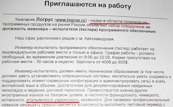 Pavel Titov приглашает всех в компанию Логрус - лидер в области локализации совершенно нелокализуемого. Особенно если вы - спец в итальянском украинском!