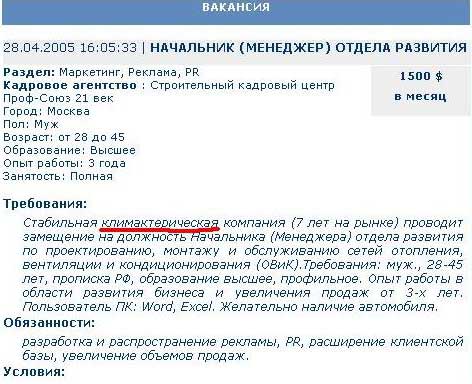Особенно мне нравится фраза "стабильная климактерическая" - то есть климакс у них - явление перманентное для всех сотрудников. Даже у муж. 28-45 лет.