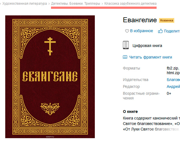 Мелан Холик: Евангелие вполне попадает под классификацию жанра "Фантастический детективный триллер", и мистики хватает, и расследование какое то есть