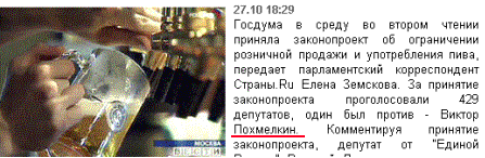 Разумеется, радуется Kostya, против ограничения потребления пива голосовал именно Похмелкин! Кому же еще!..