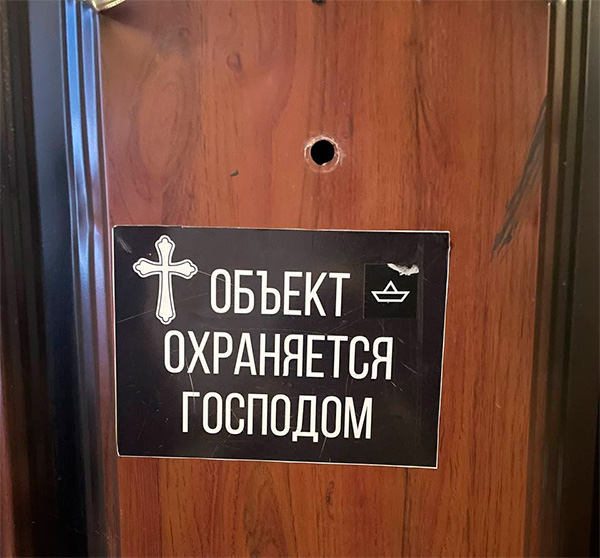 Тут два варианта, считает Димитриу. Или все объекты охраняются Господом, тогда вывеска явно избыточна, или же они заключили с Господом персональный контракт на охрану.