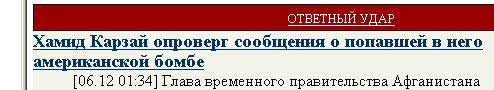 - Эти америкосы, - сообщил Хамид Карзай нашему корреспонденту, - уже совсем обурели. Бомба в меня практически не попала! Ну задела ухо, ну и что? И это даже не бомба была, а ракета самонаведения. Врачам, между прочим, удалось меня спасти. Так что пускай эти продажные империалистические журналюги не гонят. Кстати, спасибо вам, что устроили этот спиритический сеанс. Я должен был открыть глаза миру на этих козлов.