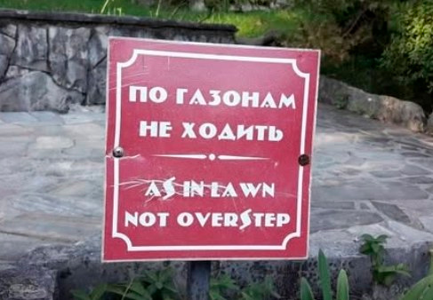 Перевод на английский, вздыхает Лопаточник, свеж и прекрасен. На английском это означает: "Как в газоне не переступать".