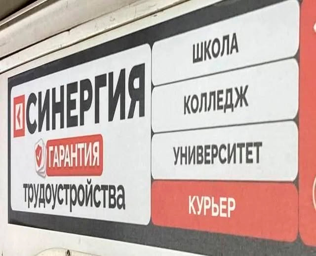"Синергия", рассказал Константин, гарантирует вам трудоустройство курьером. Но при условии, конечно, окончания школы, колледжа, университета и получения звания кандидата наук.