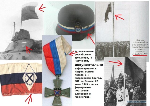 Dao192 восхищается этими идиотами, которые разместили на "патриотическом" плакате актёра Жарова в образе маршала Жукова, а в левом нижнем углу разместили романовский флаг, под которым во времена Жукова выступала только Русская Освободительная Армия генерала Власова. (Основной флаг у них был андреевский, но есть фотографии, где какие-то их подразделения выступали по бело-сине-красным романовским флагом.)