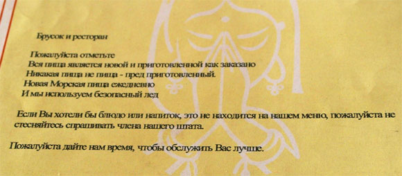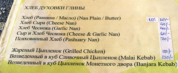 Составители этого меню по-английски тоже не очень. Оно в оригинале явно было на хинди, а затем машинно переведено на английский и русский.