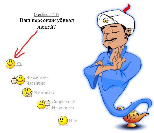 На знаменитом сайте "Акинатор", рассказал Дмитрий, как-то своеобразно интерпретируются ответы. Речь идет о смайликах с ответами.