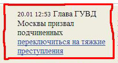 Глава ГУВД, как рассказал Алексей, недоволен уровнем преступлений среди своих подчиненных.