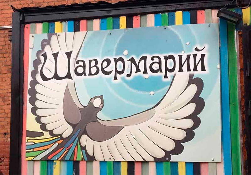 Закусить, предлагает Антон, лучше податься в Шавермарий. Это же вам не какая-то пошлая Шаурмячная (от слова "мяу"), это фактически французская Шавермэ́!