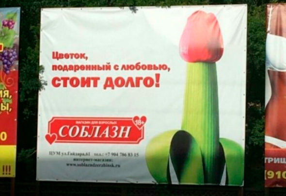 А этот магазин товаров для взрослых вполне креативно рекламируется, ничего не скажешь.