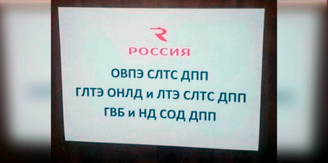 На табличке АК "Россия" понял только СЛТС (Служба Лётно-Технического Состава), СОД (Служба Обслуживания Двигателей) и ДПП (Департамент Производства Полётов). А вот прочие сокращения зело мудрёные!