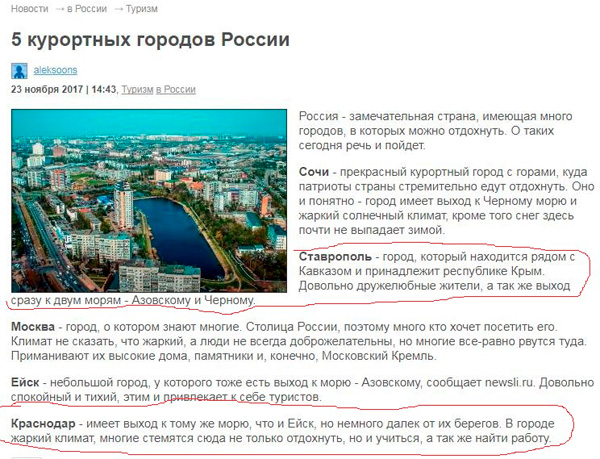 Анна спешит поделиться пятью главными курортами России. Там прекрасно ВСЕ. И Москва (главный курорт), и Краснодар, и Ставрополь! Главные здравницы, кто б сомневался.