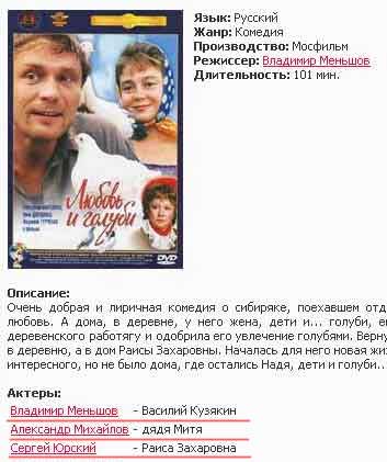 Много лет White смотрит великолепный фильм "Любовь и голуби", однако он совершенно не знал, что там не только потрясающие актеры, но и еще изумительные гримеры... А Юрский-то, Юрский... Совершенно универсальный актер!